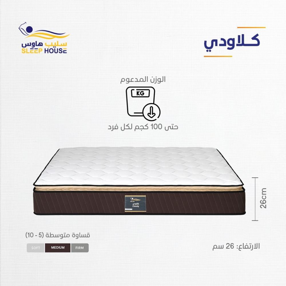 مرتبة كلاودي|CLAUDY| متوسطة الليونة|ارتفاع 26سم ضمان 6 سنوات