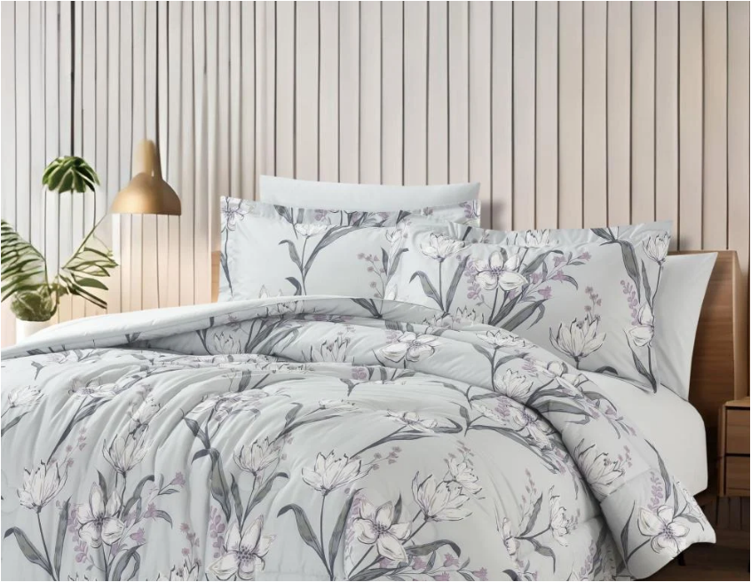 بعض تشكيلات مفارش كانون تُطرح كأطقم متكاملة، تضم غطاء لحاف أنيق، ملاءة مطاطية عملية، كيس مخدة، وأغطية مخدات مزينة بتفاصيل دقيقة، ما يخلق مظهرًا متناغمًا ومتناسقًا يعطي الغرفة هوية متكاملة.