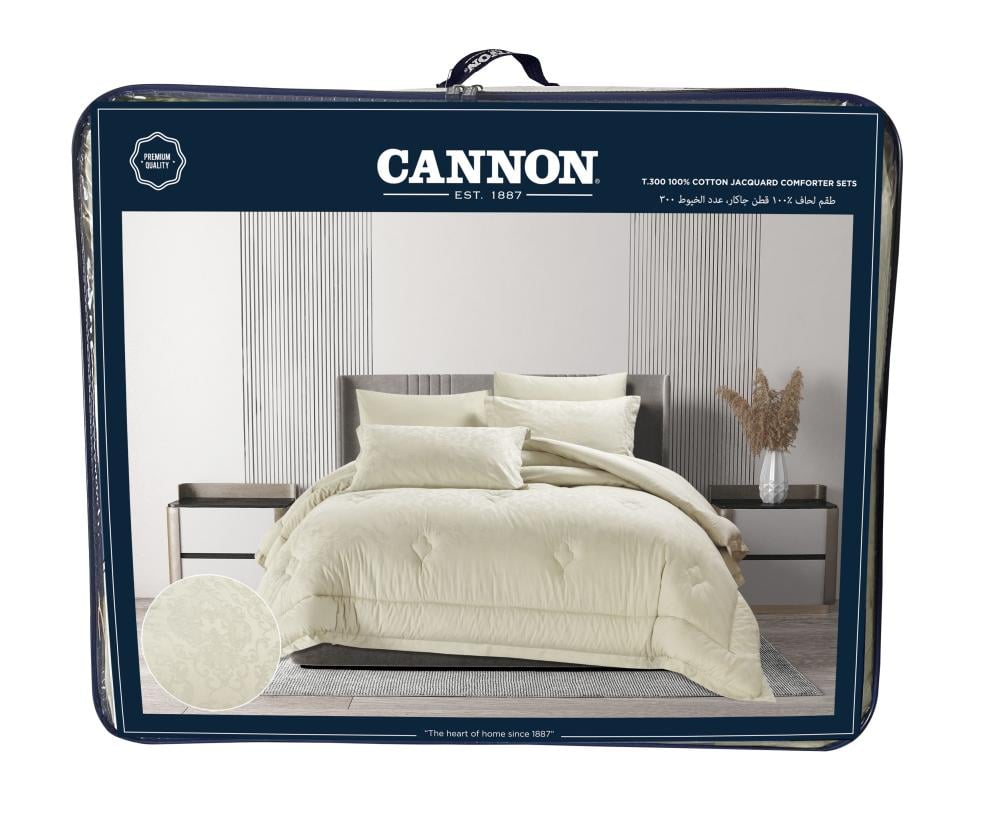 طقم مفرش كانون جاكار قطن 100% 300 غرزة نفرين (CREAM)