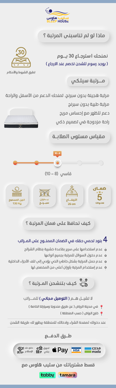 - تم تصنيعها بعناية لتزويد المستخدمين بتجربة نوم متوازنة لسنوات طويلة مدعومة بضمان 5 سنوات.