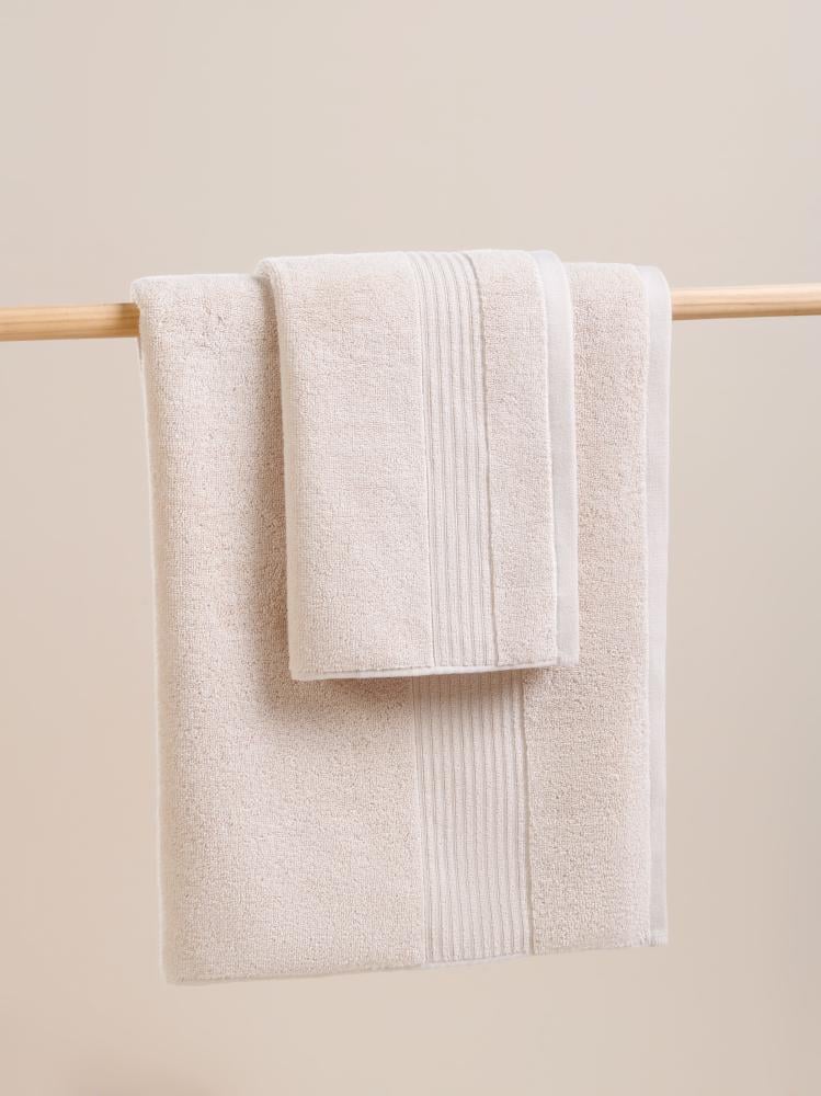 - التصميم: خياطة متقنة تمنح المنشفة شكلاً أنيقاً مع حواف مرتبة تعزز من متانتها.